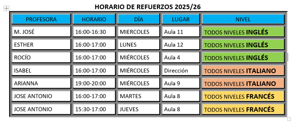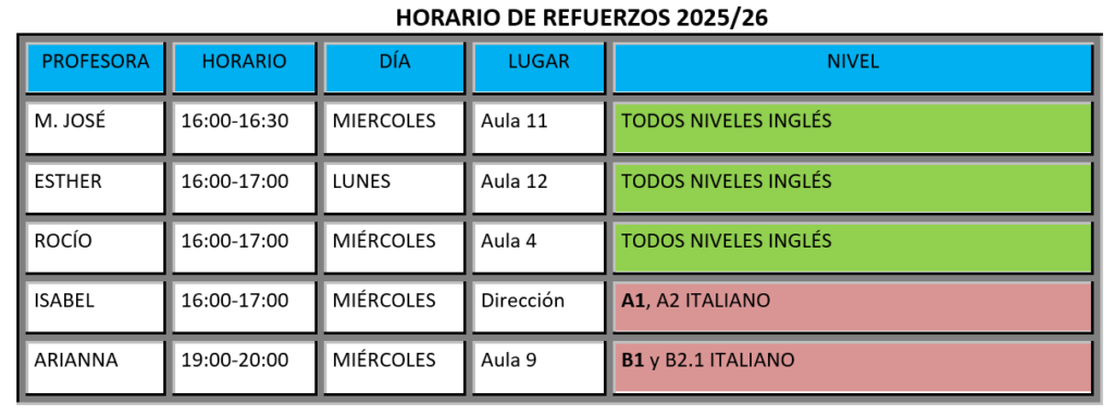 Las horas de refuerzo están destinadas a que los alumnos practiquen las destrezas orales.